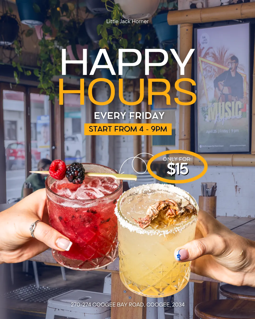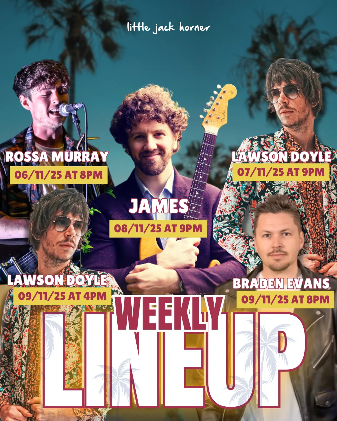 Burn up your weekends at Little Jack Horner with live music every Friday to Sunday! From smooth acoustic sets to energetic beats that get the crowd moving, we’ve got the soundtrack to your perfect night out. Whether you're grooving with mates, vibing solo, or just here for the music and mojitos, there's something for everyone.